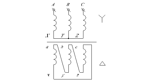 Рис.1.28. Соединение трехфазного трансформатора по схеме: Y/