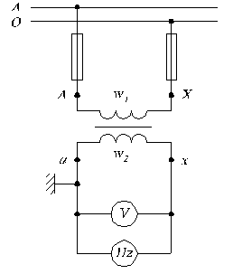 Рис.1.32. Схема включения измерительного трансформатора напряжения