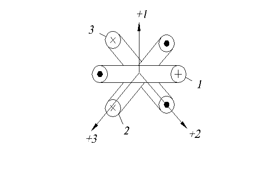 Если оси двух катушек и , сдвинутые в пространстве относительно друг друга на 90 пространственных градусов, обтекаются токами