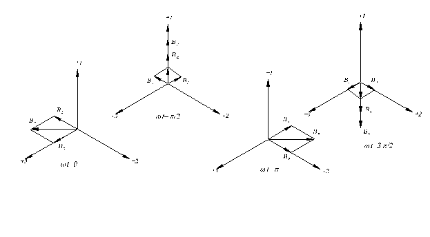 Положительные направления осей катушек обозначим как . Индукцию первой катушки обозначим , второй- , третьей - . Построим вектор результирующей индукции для моментов времени (рис.2.6).