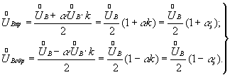 Напряжение управления изменяется только по величине в соответствии с сигналом управления , оставаясь сдвинутым по фазе на по отношению к напряжению возбуждения . Для определения основных свойств двигателя воспользуемся выражениями, полученными при разложении эллиптического поля двухфазной машины на два круговых поля, вращающихся в противоположных направлениях, методом симметричных составляющих. Заменив на , можно записать