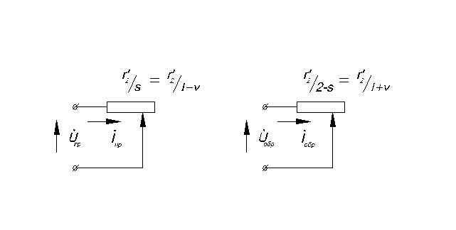 Воспользуемся упрощенными схемами замещения ротора, в которых пренебрегается индуктивными сопротивлениями рассеяния ротора (рис. 2.26а, б):
