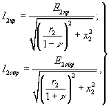 Характеристики реального двигателя с амплитудным управлением. В реальном двигателе при скорость холостого хода больше, чем в идеализированном. Объясняется это тем, что с повышением относительной скорости ротора его индуктивное сопротивление сильнее влияет на ток ротора обратной последовательности , чем на ток прямой последовательности . Эти токи можно определить из схем замещения ротора по формулам