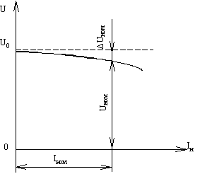 Внешней характеристикой называется зависимость U=f(Iн) при n=const и Iн=const (рис. 4.9а). Под нагрузкой напряжение генератора