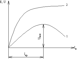 Внешняя характеристика (кривая 1) и характеристика холостого хода (кривая 2) изображены на рис. 4.12б. Ввиду того, что в генераторе с последовательным возбуждением напряжение сильно изменяется при изменении нагрузки, такие генераторы практически не применяются. Их используют лишь при электрическом торможении двигателей с последовательным возбуждением, которые при этом переводятся в генераторный режим.