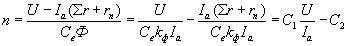 Если пренебречь размагничивающим действием реакции якоря, то можно считать, что магнитный поток двигателя не зависит от тока нагрузки. В этом случае механическая характеристика двигателя ω=f(M) будет линейной.