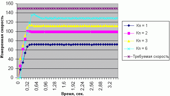Кд равными 0. Для получения требуемого времени отклика двигателя необходимо подбирать значение Кп.