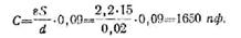 пластинами помещен диэлектрик — пропарафинированная бумага толщиной 0,02 см. Вычислить емкость