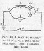 размыкания цепи (рис. 42, б), наоборот, э. д. с. самоиндукции будет иметь