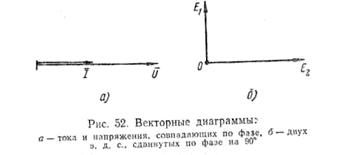 показать, что ток и напряжение совпадают по фазе (рис. 52,а) или э.д.с.