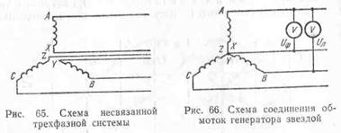 генератора звездой (рис. 66) концы всех трех фаз X,