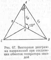 показана на векторной диаграмме (рис. 67). Напряжение между любыми точками