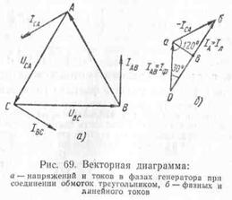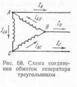 генератора треугольником (рис. 68) начало (или конец) каждой фазы соединяется