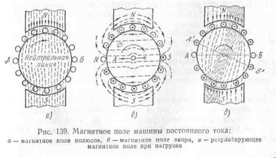 при нагрузке машины, то будет создано магнитное поле, якоря (рис. 139, б). Это