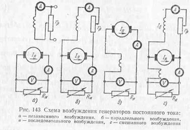143, б), последовательного (рис. 143, в) и смешанного (рис. 143, г) возбуждения.