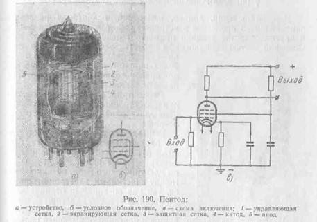 (в том числе три сетки) и поэтому ее называют пятиэлектродной лампой или