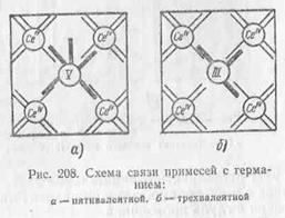 германий, причем используются в этом случае лишь четыре электрона, а пятый (рис.