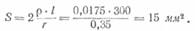 Если ту же линию выполнить медным проводом, то сечение его будет равно: