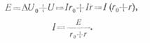 Если E — электродвижущая сила в вольтах, I — ток в амперах, r — сопротивление внешней цепи в омах, r0 —