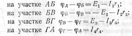 сложной электрической цепи в виде замкнутого контура АБВГ. На схеме указаны