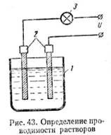 прохождения тока через жидкости. Соберем схему, показанную на рис. 43. В сосуд