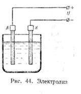 соединенный с отрицательным зажимом — катодом (К) (рис. 44). Через некоторое время на электродах будут заметны