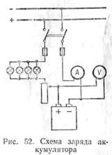 заряда аккумуляторов регулируют с помощью реостата, включенного последовательно