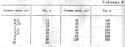 производят по таблицам, приведенным в «Правилах устройств электротехнических