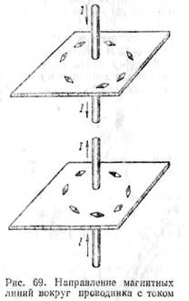 увидеть, что магнитные стрелки будут поворачиваться (рис. 69). Это