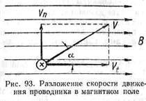 от величины синуса угла а между направлением движения проводника и направлением магнитного поля (рис. 93).