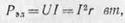 Р=UI — электрическая мощность, отдаваемая во внешнюю цепь;