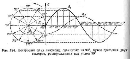 собой на тот же угол α. На рис. 128 показано построение двух синусоид,