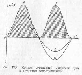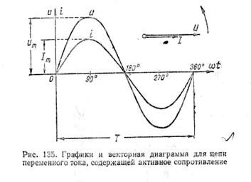 переменного тока, содержащей сопротивление r, напряжение и ток совпадают по фазе. На рис. 135