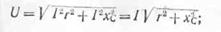 сопротивления и емкости. Напряжение сети U представляет собой геометрическую сумму падений