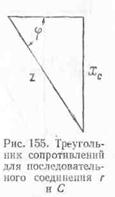 напряжений (рис. 155) на величину тока I, получим треугольник сопротивлений для той же цепи (см.