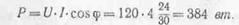 активная мощность Р = 384 вт. безвозвратно преобразуется
