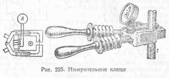 раздвигаться и охватывать провод или шину. Амперметр, укрепленный на клещах,