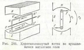 вращаться в направлении вращения поля. Если бы скорость вращения витка n достигла скорости вращения поля n0, то виток и