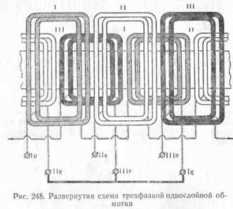 На рис. 247, а показана обмотка статора