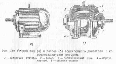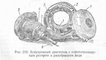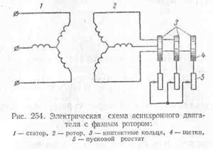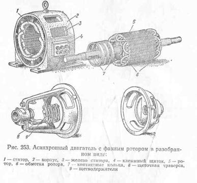 разрез асинхронного двигателя с фазным ротором, а на рис. 253 этот двигатель