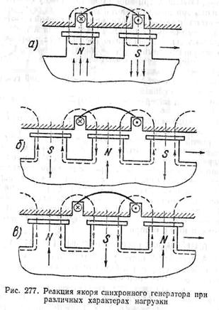 нагрузке синхронного генератора по обмотке статора (якоря) проходит ток I, который создает свой