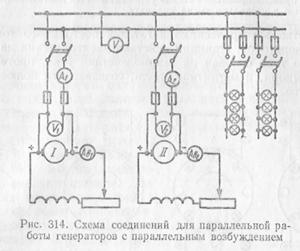 соединений для параллельной работы двух генераторов с параллельным возбуждением.