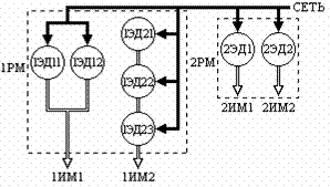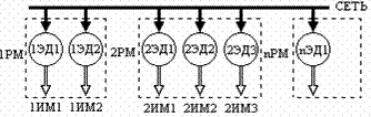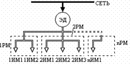 машинам 1РМ, 2РМ,…,nРМ и их исполнительным механизмам 1ИМ1, 1ИМ2,…,nИМк.