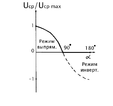 Зависимость выпрямленного напряжения управляемого выпрямителя от угла запаздывания (характеристикой управления)