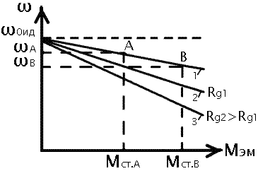 Семейство механических характеристик при номинальном напряжении на якоре и потоке возбуждения и различных добавочных сопротивлениях в цепи якоря
