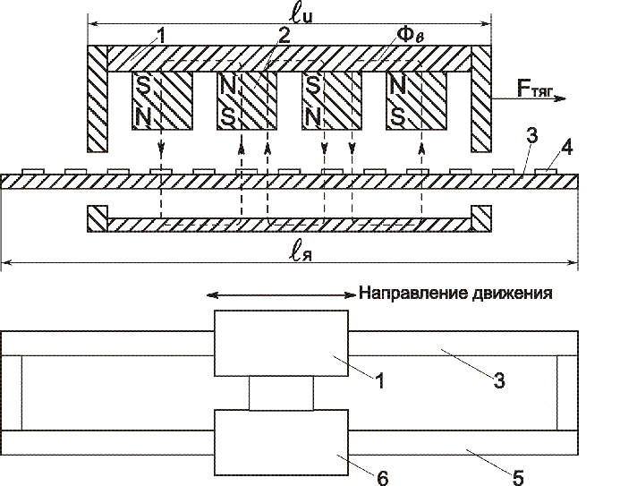 Схема магнитной системы двухфазного однокоординатного ЛШД индукторного типа