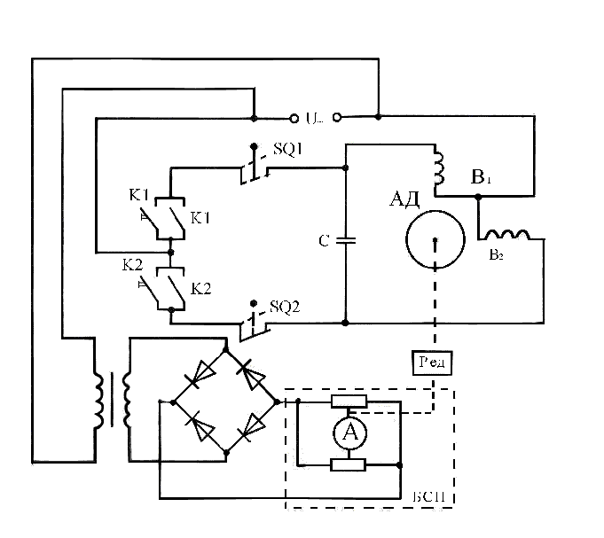 Электрическая схема двухпозиционного ИМ постоянной скорости