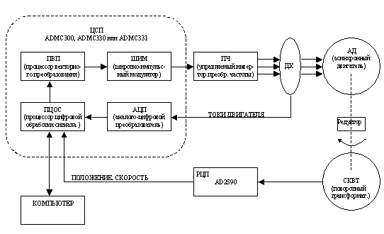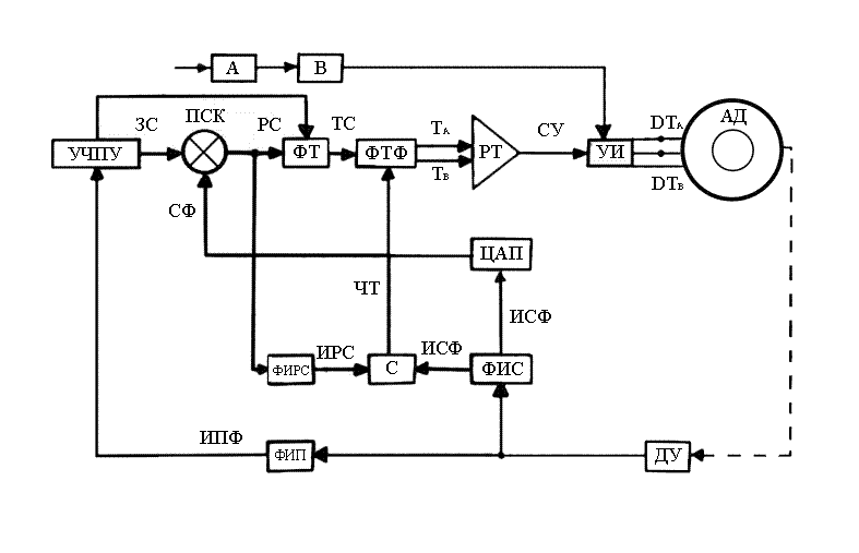 Упрощенная блок-схема мехатронного интеллектуального ИМ с асинхронным двигателем